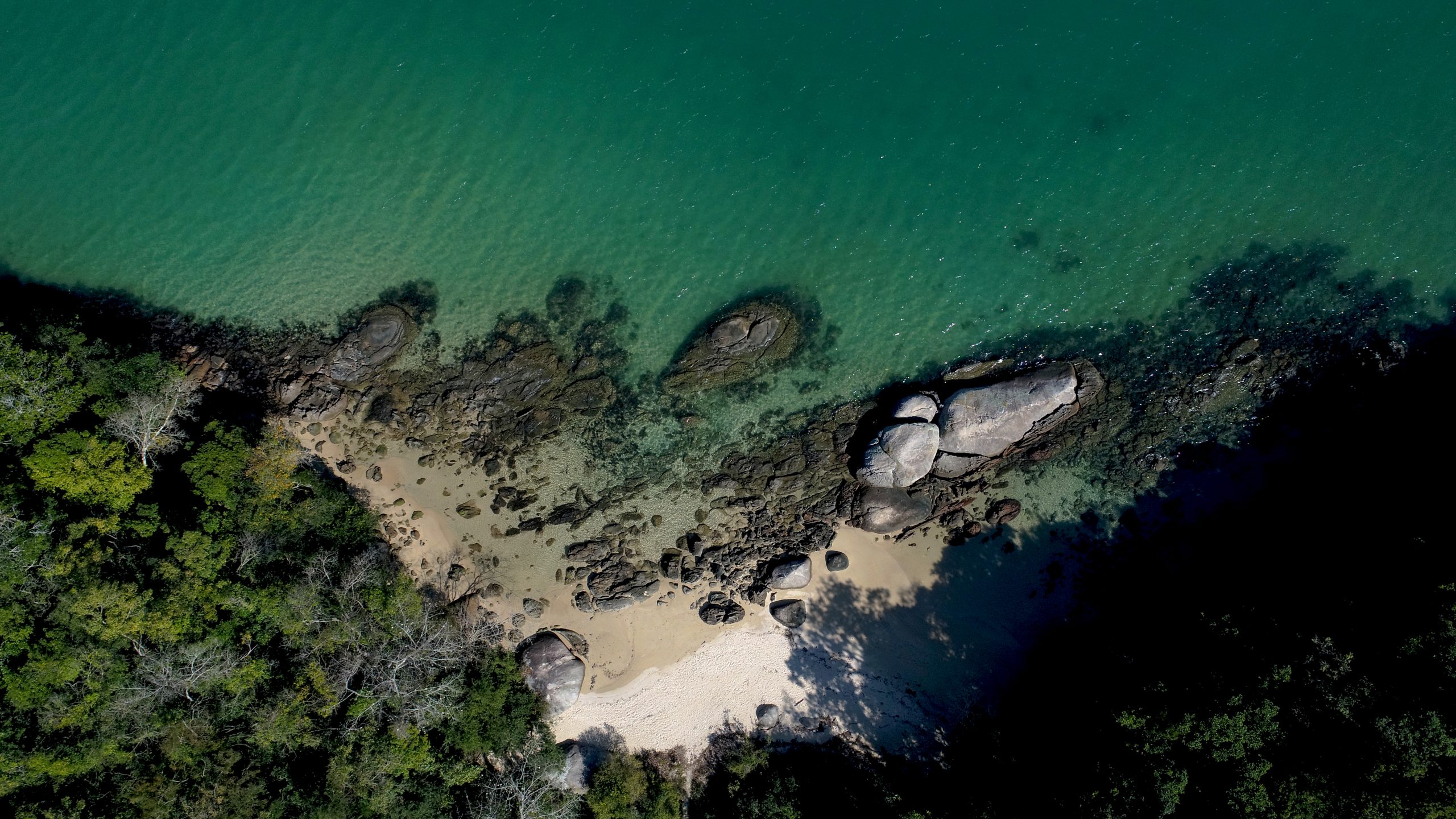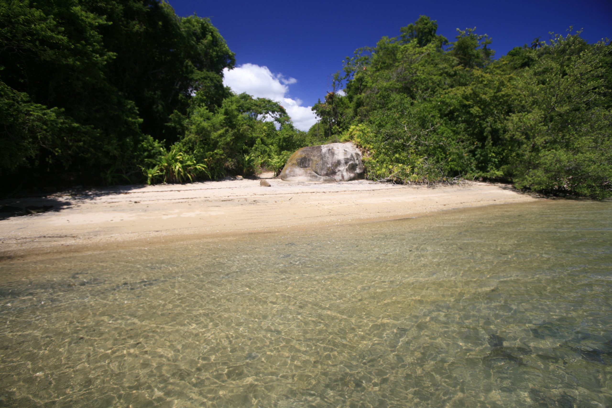 Boats arriving at the site anchor on one side, and visitors can walk along a short trail through pitanga trees, less than a minute’s walk, to the opposite side, where rocks help form delightful natural pools.